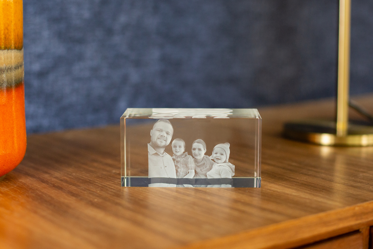 This is the largest of our crystals and is ideal for family portraits. Imagine the joy of seeing a beloved family portrait or special moment captured in exquisite detail within a stunning crystal. This 3d photo crystal made from the finest optically clear crystal glass is perfect to display in an area like the living room where it will take pride of place. This crystal creates a focal point, drawing admiration and conversations about the stories and memories it holds. Customise your crystal with additional text such as names dates or a special message (No additional charge)