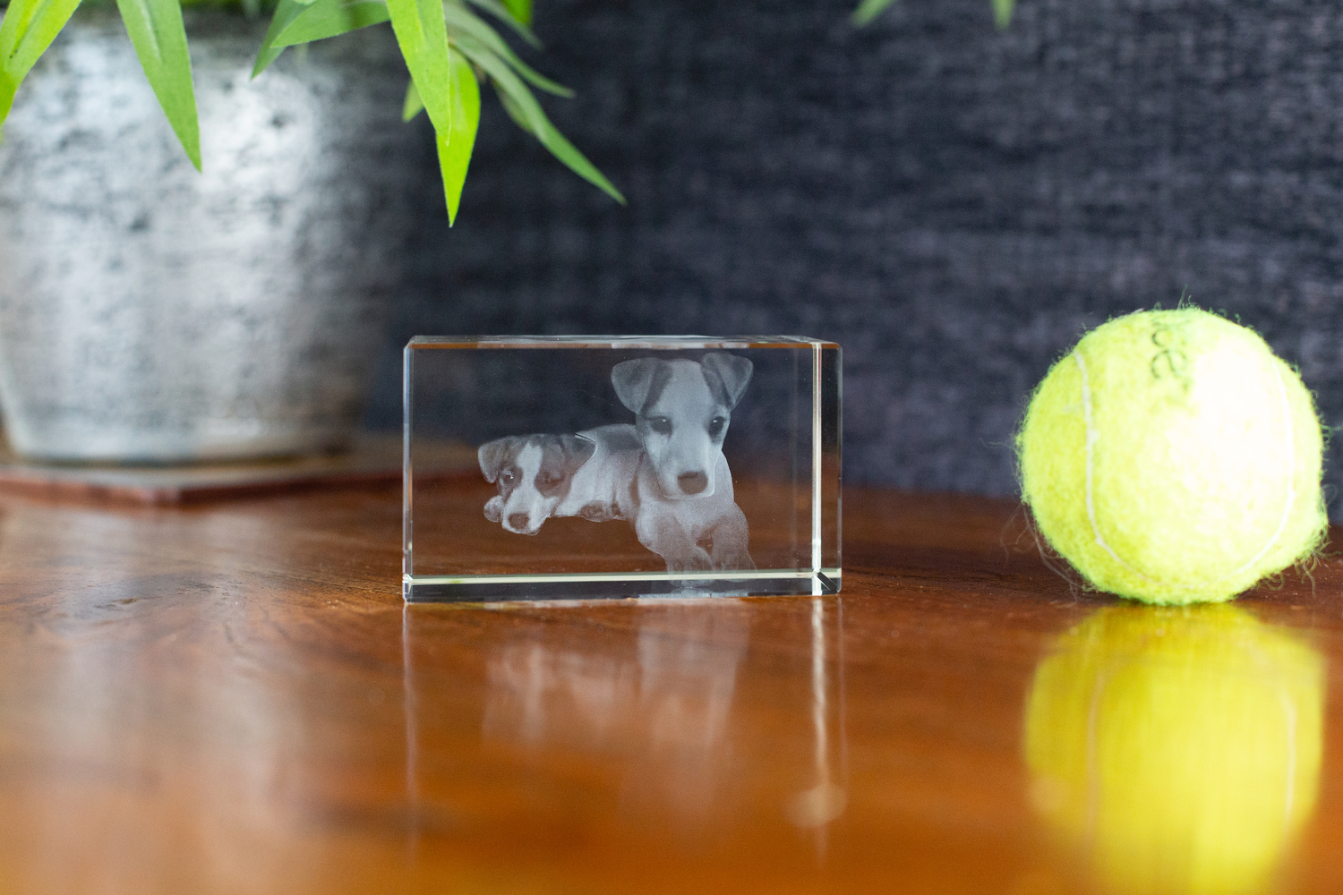 A beautiful 100 x 60 x 60mm 3D Crystal in Landscape, image showing 1-4 persons/pets. Includes Gift box.