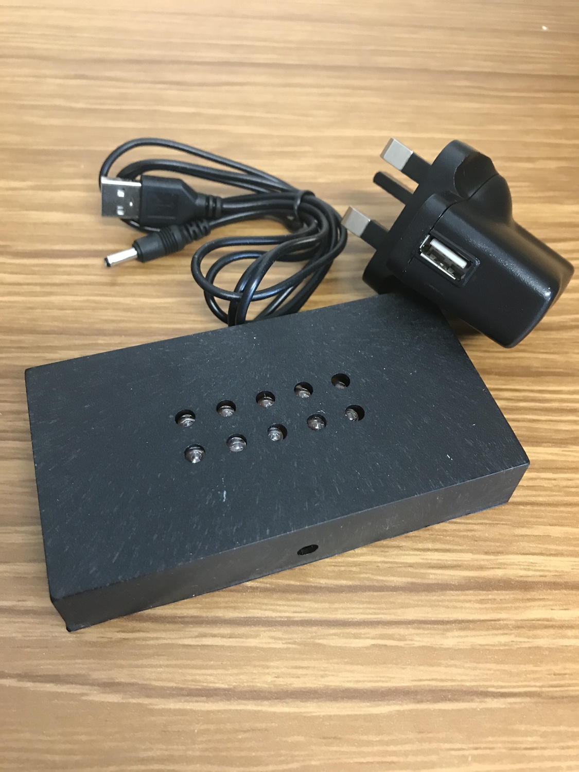 This light base has 10 white LED lights and is suitable for Landscape style crystals. It includes an USB adapter and UK plug. There is no battery option.